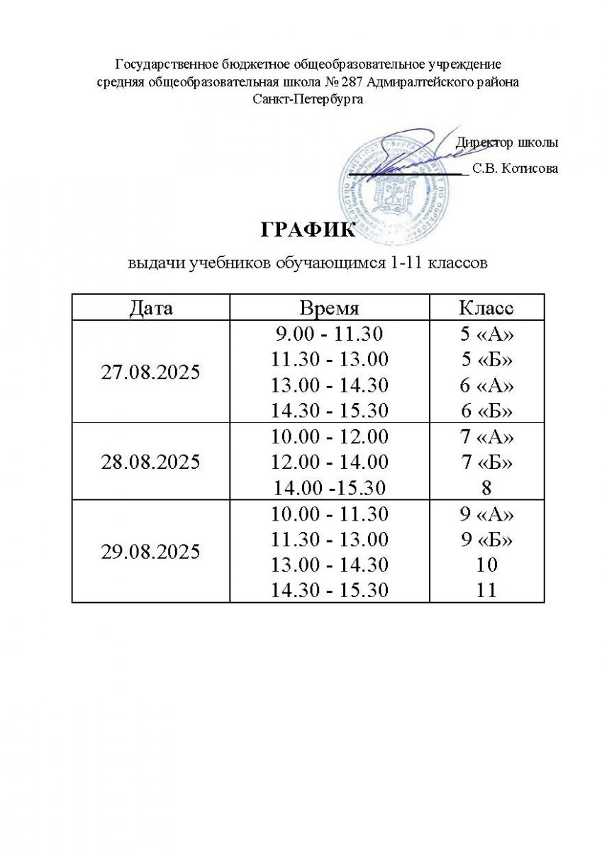 Получить учебники можно согласно графику (см. фото).